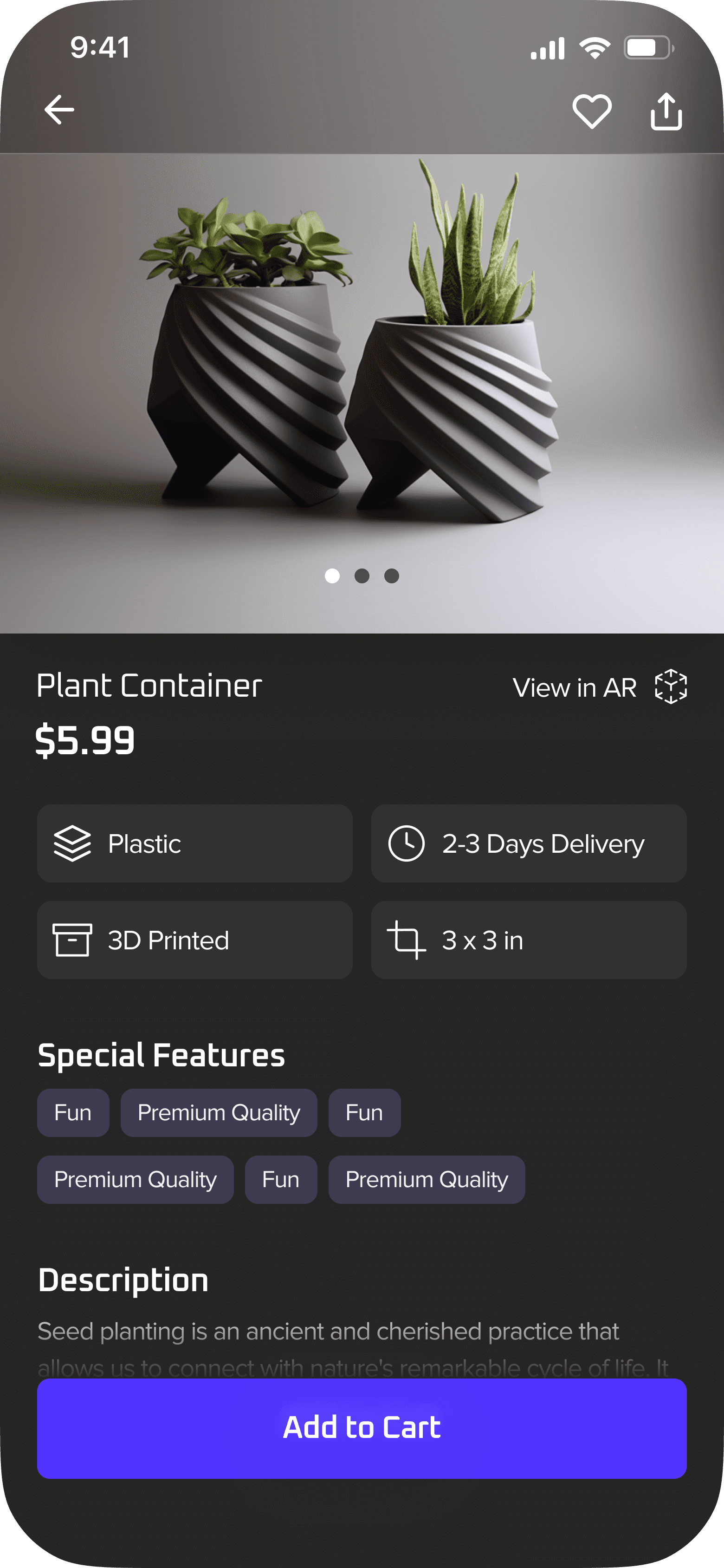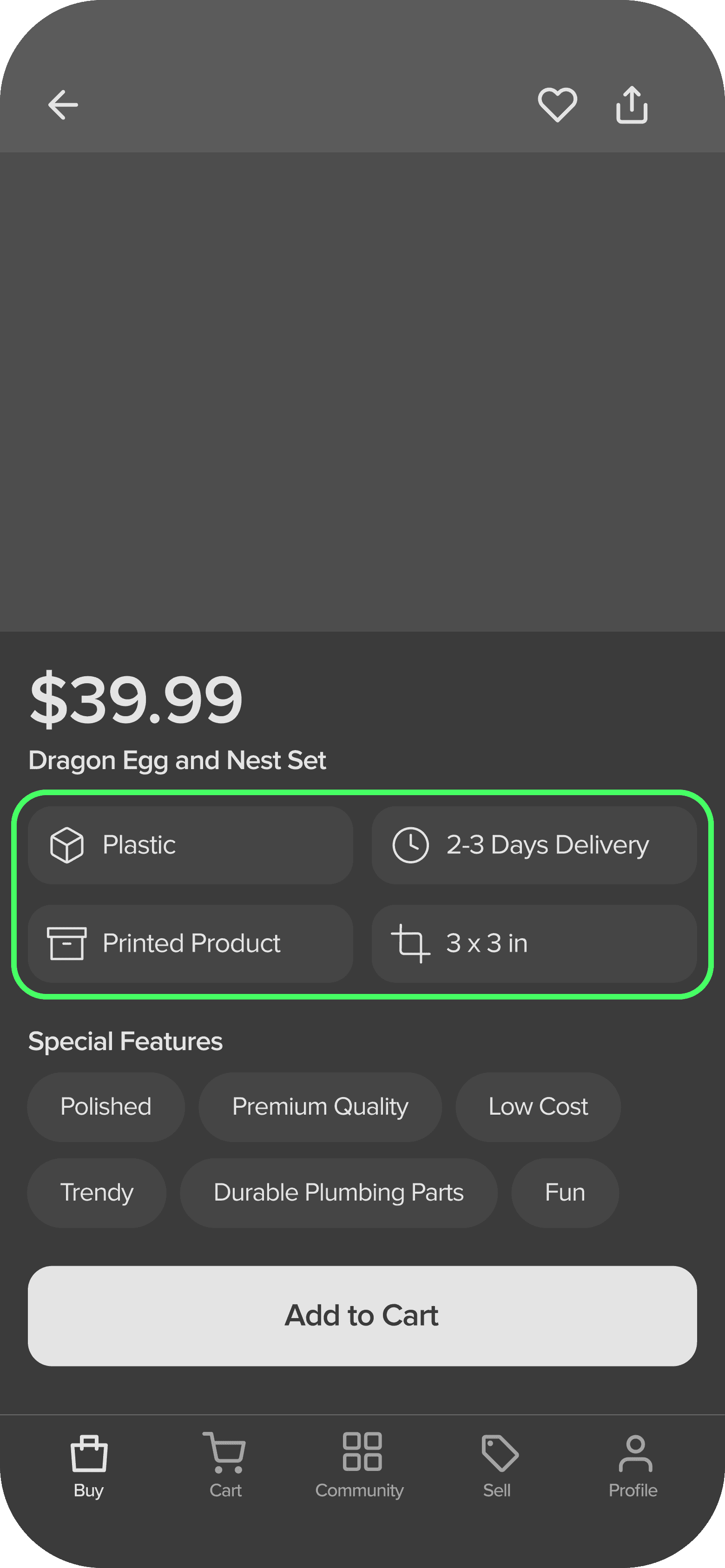 When finding 3D products, buyers look for 3D files and printed products. The product page includes details buyers find important.
