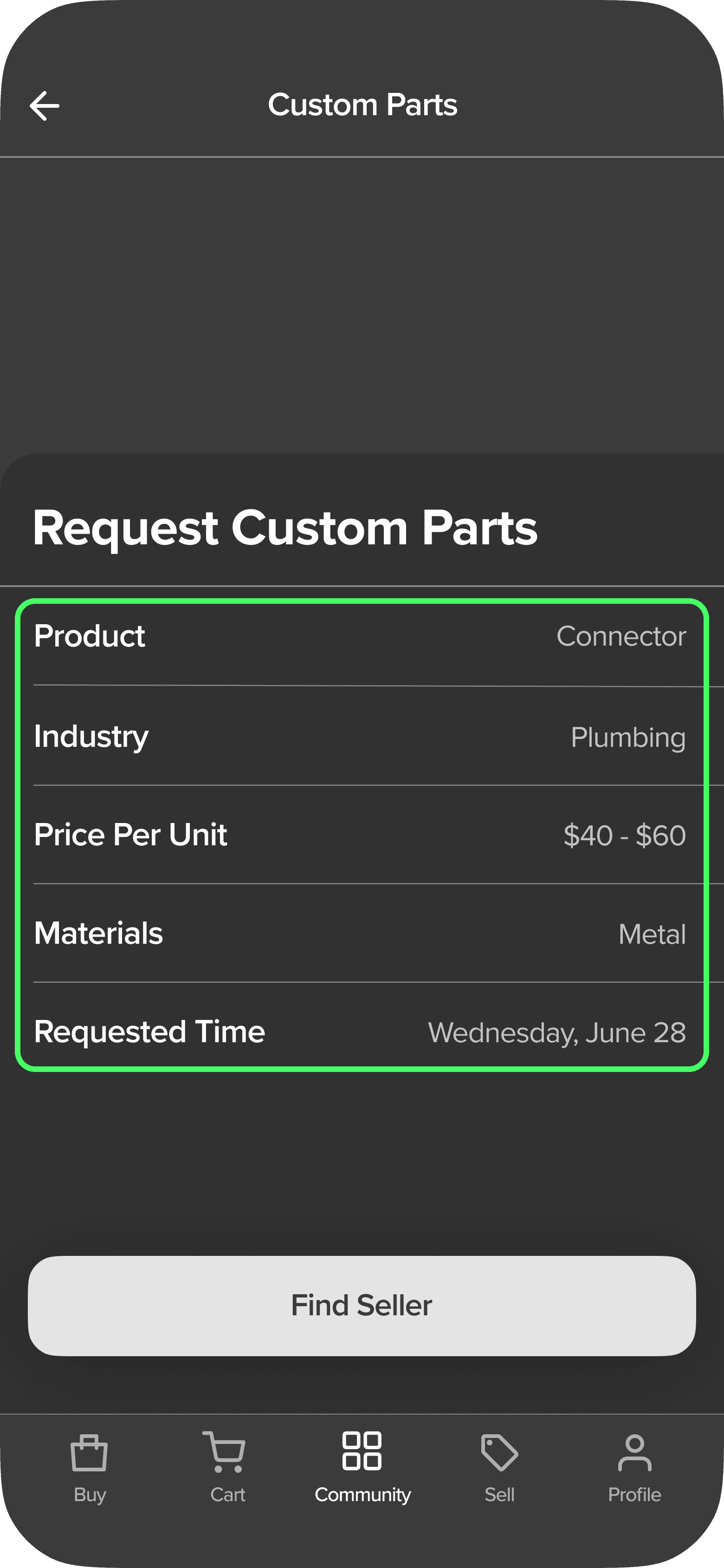 When requesting custom parts, we integrated keywords that buyers need when connecting with 3D experts.