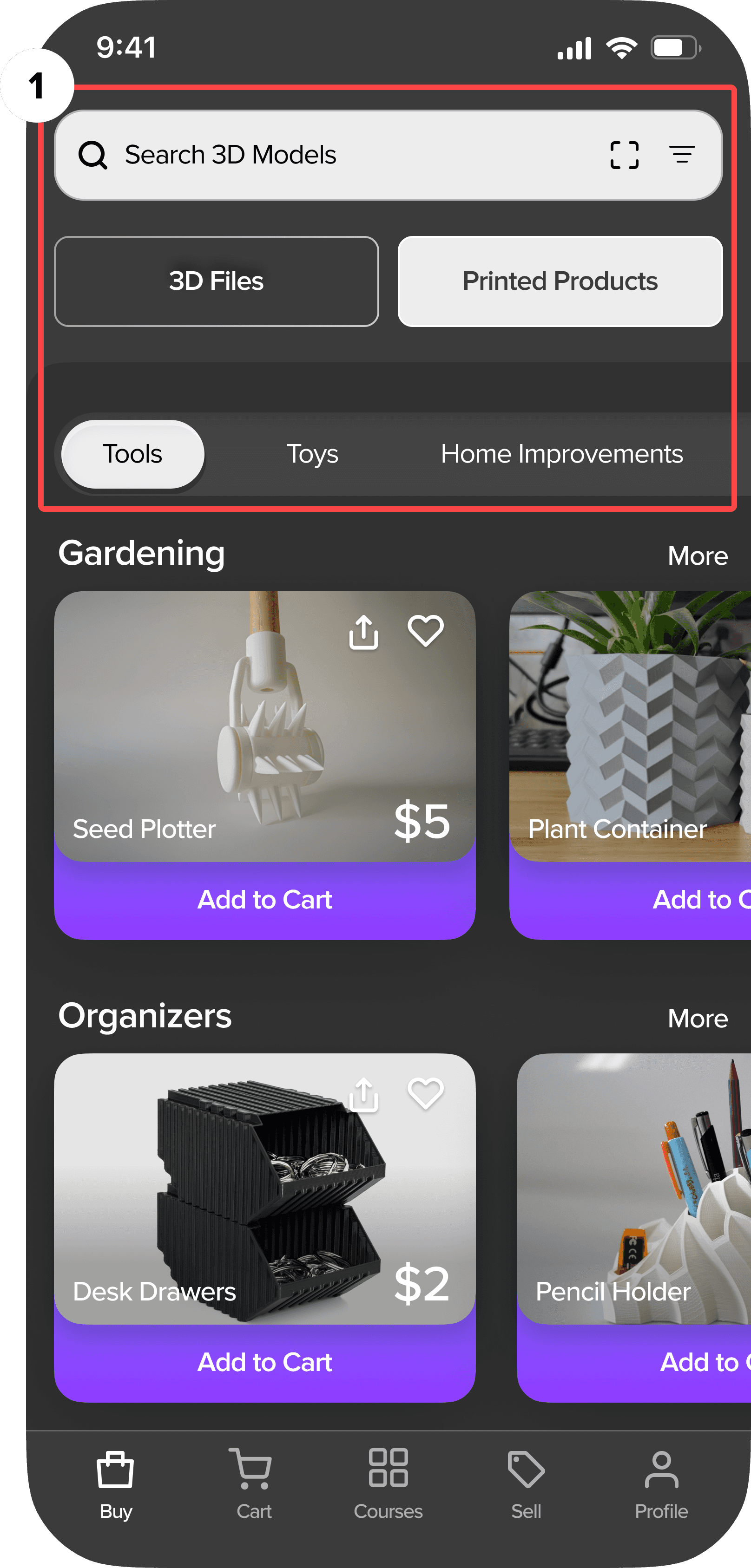 To allow inclusive design, 3D buyers can learn how to sell and print their own files of 3D models.