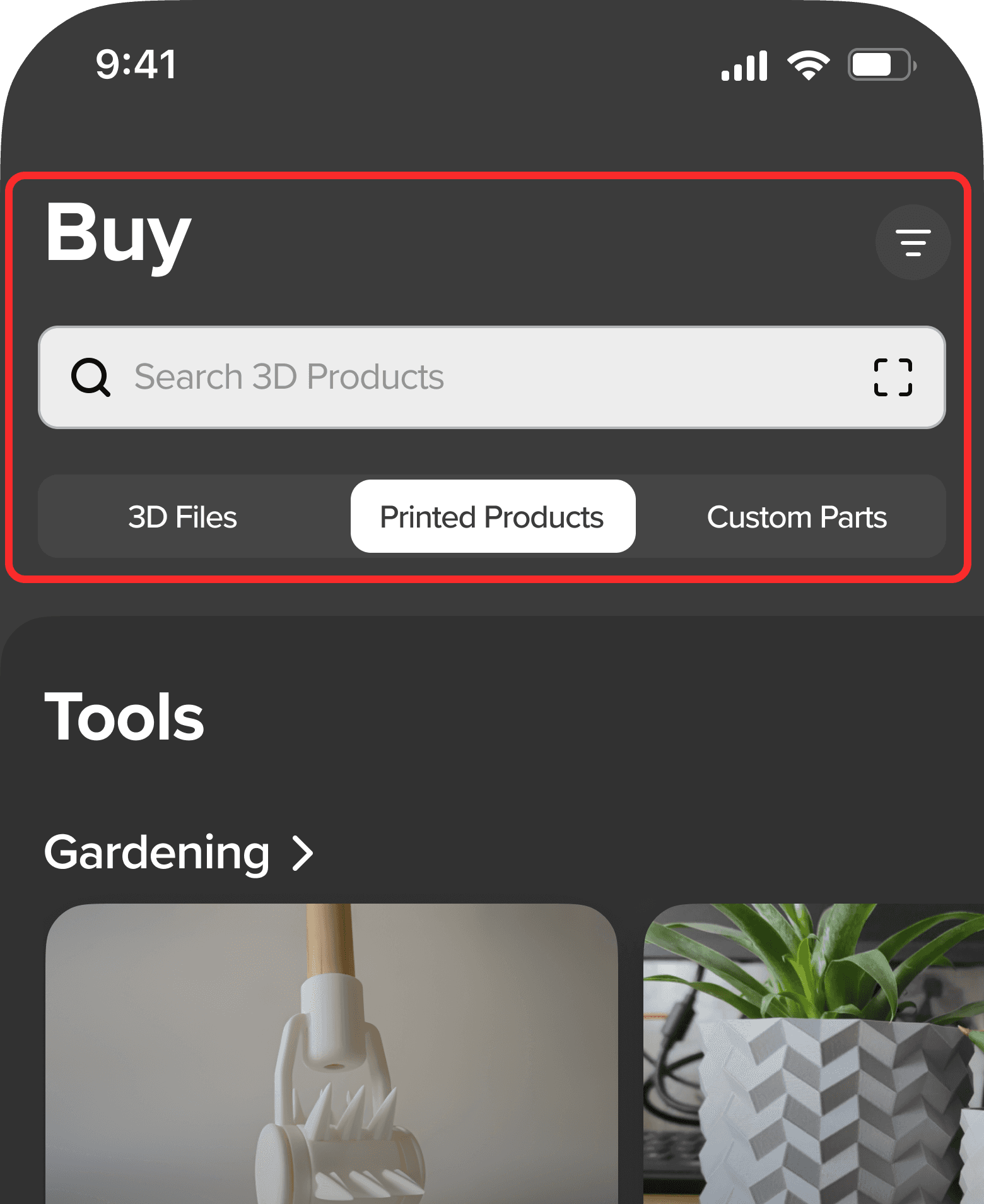 When finding a 3D product, users need to first categorize by 3D types before using the search. However, we had search at the top.