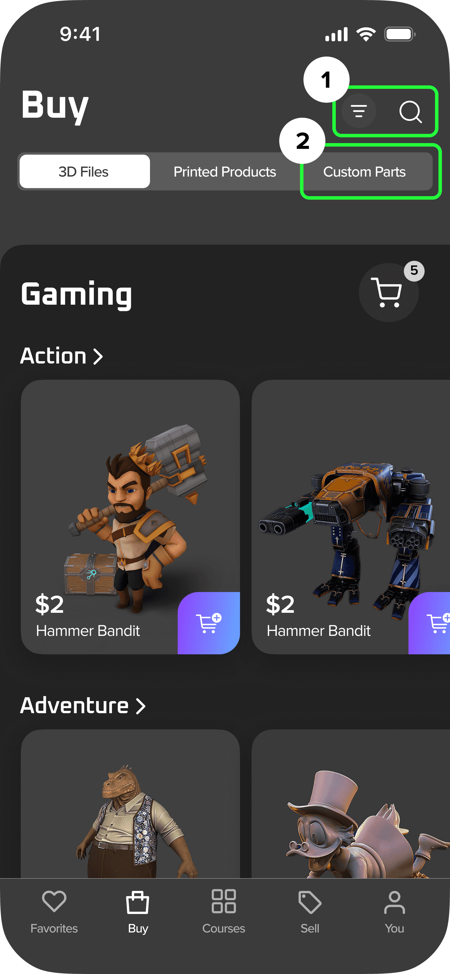 Simplifying search features and repositioning custom parts, enhanced discoverability for custom parts & simplicity finding 3D products.